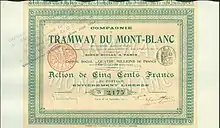 Share of the Compagnie du Tramway du Mont-Blanc, issued 18. September 1911