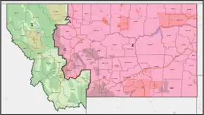 List of members of the United States House delegation from Montana, district boundary maps, and the district political ratings according to the CPVI. The delegation has a total of 2 members, both with the Republican party.