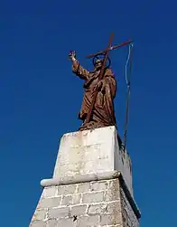 On the eastern peak of the mountain stands the cast-iron statue of Christ the Redeemer, placed on top of a quadrangular pyramidal base made of ashlar with a narrow chapel inside.