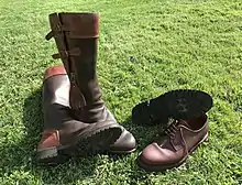 The types of garments worn at Spanish monterías vary, but these are significantly more strict and thus noticeable at high-end hunts, or those attended by the traditional elites. Just as monterías norteñas prioritise function over form, and reflective clothes are most common (similar to other European countries), generally speaking, a certain formality is expected at a conventional Spanish montería, and therefore ties and sport jackets are appropriate.[39] Spanish leather goods are amongst the most commonly used elements in a montería. In this regard, zahones (either in leather or Grazalema cloth) are the most iconic piece of equipment of a montería, and are used both by the beaters and the huntsmen, although they have suffered an abandoning in the last decades on behalf of the latter.[43] Footwear such as "monteras" (Spanish artisanal leather boots with fringes) or "zapatos cartujanos" (leather blucher shoes with mountain soles) and leather gaiters are widespread.[39] Bullet belts, montería bags, rifle cases and other Spanish leather items are typical. The world's largest and most important leather craftsman industry is located in the south of Spain, in places like Castilla-La Mancha, where there are manufacturers like "Rey Pavón", the official supplier to James Purdey & Sons, Holland & Holland, Beretta or Cording's of Piccadilly.[39] Incidentally, one of the most revered types of leather, cordovan, is originally from Córdoba, hence the name.[44]
