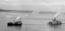On July 2, 1888, Montesano was still at Yaquina.[18] It was reported that the boat would leave for Coos Bay "at the first favorable opportunity."[18] On July 4, 1888, the tug Columbia, under Captain Magee, was dispatched from Coos Bay to Yaquina Bay to bring down Montesano, which then belonged to the Southern Oregon Company.[19] Arriving at Yaquina Bay, Columbia found the bar so rough that two coastal steamers at the bay were unable to depart.[19] Columbia did enter the bay, but the next day sea conditions were still too extreme for Montesano, so Columbia had to depart without the sternwheeler.[19]