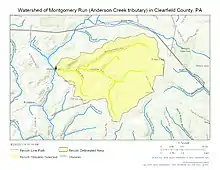 Watershed of Montgomery Run (Anderson Creek tributary) in Clearfield County, Pennsylvania, USA