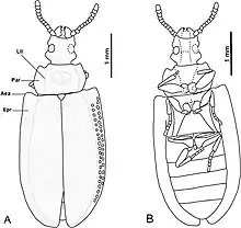 - ↑ Kirejtshuk, Alexander G. (2020-02-17). "Taxonomic Review of Fossil Coleopterous Families (Insecta, Coleoptera). Suborder Archostemata: Superfamilies Coleopseoidea and Cupedoidea". Geosciences. 10 (2): 73. Bibcode:2020Geosc..10...73K. doi:10.3390/geosciences10020073. ISSN 2076-3263.