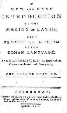 Hugh Christie, the first rector of the Grammar School, published textbooks on Latin.[14]