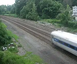 ![]() The former Montrose station as seen in 2011, 15 years after its closure, with a Metro-North train bound for Poughkeepsie visible. | |||||||||||||||||||||