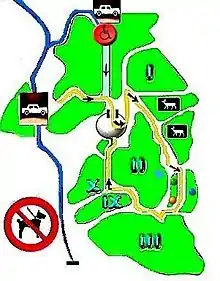Big white Circle – Starting point, from where the public starts a tour of the animal park.