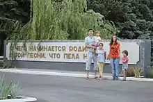 Before the entrance on the right side of the path there was an inscription – "It is devoted to the woman – mother"(Currently the inscription is missing) and "What does Motherland begin with? It begins with that song that was sung to us by mother".[1] The monument was opened in September, 1980.