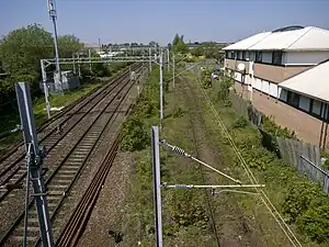 The station closed in 1958,[4] although the Rugby–Birmingham–Stafford line loop from the West Coast Main Line still runs through the site of the station today. Monument Lane goods yard was adjacent to the East, as was an engine shed with turntable.