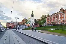The Monument to Minin and Pozharsky (Russian: Па́мятник Ми́нину и Пожа́рскому) is a copy of the monument erected on Red Square in Moscow. The monument is located in the historic centre of Nizhny Novgorod on National Unity Square, under the walls of the Kremlin, near the Church of St. John the Baptist.
