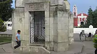 The tower has an approximate height of 16 m from the base, the square in which the clock tower is currently located is limited in its four corners with lamps that have the same shape as the tower but on a smaller scale.[3]