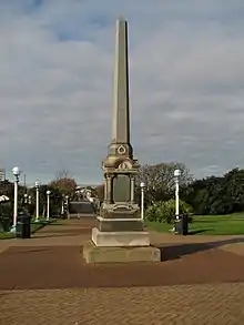 The Monumental Obelisk, Southport, stands on the Promenade in Southport. Merseyside, England. It commemorates a number of events, mainly relating to the work of the Southport lifeboats, and in particular the loss of fourteen lifeboatmen when their boat capsized in 1886. The monument was designed by Thomas Robinson, and is constructed in granite. It is recorded in the National Heritage List for England as a designated Grade II listed building.