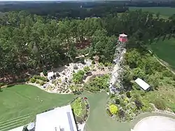 The garden's central landmark is the firetower, which soars to a height of 100 ft (30 m) and was purchased during an auction in Olanta, South Carolina in 2004. Three years later, construction was completed on the Firetower Center, which serves as the garden's visitors center, and houses offices, education, and event space.
