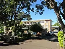 The 1960s was a period of growth at the school. Enrolments rose from 700 to 1000 between 1967 and 1970, although later fell back to 700 by 1976.[66] Further buildings were added to the school during the 1960s and 1970s, along with a swimming pool in 1963. An east-west retaining wall was built south of Block A in the late 1960s, and the retaining wall to the northwest of Block A was extended to Sherley Street at the same time.[67] Staff toilets were added to the west end of the ground floor of Block D c. 1968, and a library (Block L) was built south of the east end of Block D in 1977. Meanwhile, the converted army hut was removed from the grounds c. 1958, and the temporary classrooms blocks between 1972 and 1974.[68][69][1]