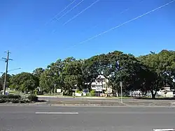 Originally part of an area called "Boggo", which ran from Dutton Park to Rocky Water Holes (later Rocklea, c. 1884), and which was part of the traditional lands of the Turrbal people, Moorooka's development was spurred on by transport improvements. Predominantly an agricultural area until the early 20th century,[2] the coming of the Beenleigh railway line in 1885 increased the attraction of the district for residential development. The Moorooka railway station was established in 1887 and the Moorooka Railway Station Estate was advertised in 1889,[3][4] but flooding in 1893 deterred settlement of the area for some time.[5][6] By 1900 Moorooka was still primarily rural, with most residents living between Ipswich Road and Beaudesert Road.[7] The house "Greenloaning", built for Robert Bell in 1904, was on land which later became the Moorooka State School's Infant School, and his family lived there until WWII.[8][1]