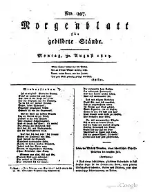 - ↑ "Morgenblatt für gebildete Stände / gebildete Leser (1807–1865)". www.degruyter.com. 1 January 2012. Retrieved 2 January 2020.