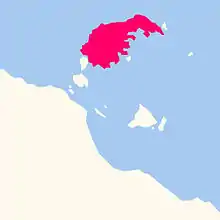 The town of Gununa is located on the south-western end of the island[4] overlooking the Appel Channel (16°40′55″S 139°11′31″E / 16.682°S 139.192°E) which separates it from Denham Island (16°42′52″S 139°09′35″E / 16.7144°S 139.1597°E).[5][6][7].