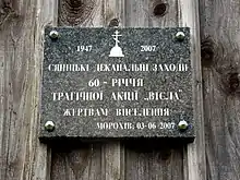 Commemorative panel of Operation Vistula on the orthodox church of Morochów