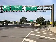 U.S. Route 1 is the primary highway serving Morrisville. It follows a southwest-northeast alignment across the southeastern portion of the borough, crossing the Delaware River into New Jersey via the Trenton–Morrisville Toll Bridge. Pennsylvania Route 32 also traverses the borough, following a north-south alignment via Bridge Street, Delmorr Avenue and River Road.
