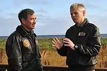 ![]() Morten Haga Lunde (right) talks with Vice Adm. Harry Harris in 2011 | |