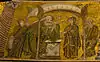 The double arch over the altar is decorated with busts of Christ, the Virgin Mary, the apostles and prophets, divided into compartments and decorated with leaves, possibly later work from the end of the 13th century. On the rectangular apse is a frieze with cherubim and seraphim between clipei, over which are the vault mosaics by Brother Jacopo, which show some connection with those in San Marco Basilica in Venice.[1]