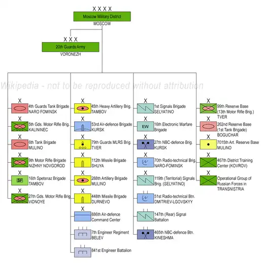 - 27th Guards Sevastopol Motor Rifle Brigade, Tyoply Stan[21] (or possibly Mosrentgen as the two districts are adjacent, hugging the border between Moscow city and Moscow Oblast at the time)