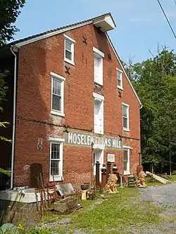 Moselem Farms Mill is a historic grist mill located in Richmond Township, Berks County, Pennsylvania. The mill was built about 1860, and is a 2 1/2-story, with basement, banked brick building on a stone foundation. It measures 45 feet, 4 inches, by 50 feet. The merchant mill was built as part of an iron furnace complex.[2]