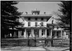 Moses retired in 1857 with an ample fortune, and left the paper to his sons. He then returned to Wallingford, Connecticut, built a luxurious Italianate house in the city, and engaged in local philanthropy.[70] The Moses Y. Beach Elementary School would later bore his name, following a land donation from him. He also gave $100,000 to the Union Army for the American Civil War, installed a 110 foot tall Liberty Pole, and gave $5,000 for St Paul's Episcopal Church reconstruction.[71] He died in 1868, and was buried at Center Street Cemetery, Wallingford, where a monument was erected in his memory.