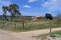 View from former railway line of historic hop kilns and Tambo River flats