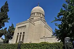 The Mostafa Kamel Museum is a museum in Cairo.[1] It was officially opened in April 1956. Before that, it was a mausoleum containing the remains of the two leaders, Mustafa Kamel and Muhammad Farid.[1] It also houses the remains of the intellectuals and activists, Abd al-Rahman al-Rafei and Fathi Radwan.[1] The museum is built in the style of the Islamic mausoleum dome and includes two halls containing some of the belongings of the leader Mustafa Kamel represented in his books and letters in his handwriting, and some pictures of his friends and relatives, as well as some of his personal belongings of clothes, dining utensils, and his office room.[1] The museum also includes oil paintings depicting the Denshway incident.[2][3] On February 8, 2001, the museum reopened after being restored.[1]
