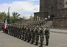 Mother Armenia (Armenian: Մայր Հայաստան Mayr Hayastan) is a female personification of Armenia. Her most public visual rendering is a monumental statue in Victory Park overlooking the capital city of Yerevan, Armenia.