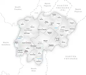 - On 1 September 2006 the municipalities of Brenles, Bussy-sur-Moudon, Chavannes-sur-Moudon, Chesalles-sur-Moudon, Cremin, Curtilles, Dompierre, Forel-sur-Lucens, Hermenches, Lovatens, Lucens, Moudon, Oulens-sur-Lucens, Prévonloup, Rossenge, Sarzens, Syens, Villars-le-Comte, and Vucherens came from the District de Moudon to join the Broye-Vully District.[1]