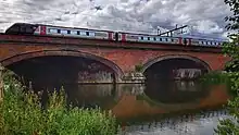 During the 2010s, the railway lines crossing the bridge were electrified, requiring the installation of 25 kV 50 Hz AC OHLE across the structure. Members of the public voiced concerns over the aesthetic impact of such modifications to the structure;[5] for its part, Network Rail commissioned studies into minimising the visual impact of the electrification effort.[9]