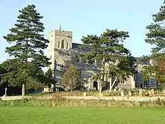 Moulton also has a fine church, St. Peter's, with an early 14th-century tower topped by a gilded weather vane in the shape of a large pike by blacksmith Charles Poulter.[4] Restored in 1851, it is a grade I listed building.[5]