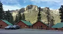 A fire destroyed the Mt. Charleston Lodge on December 28, 1961. It took firefighters from Las Vegas more than an hour to reach the site,[16] and a fire station was later built in Old Town to help stop any future fires.[17][18] The Bailey family, owners of the Hacienda resort in Las Vegas, also owned the Mt. Charleston Lodge at the time of the fire,[12] and they announced plans to rebuild it. Construction began in 1962.[19][20][21] Four years later, a 150-person restaurant was added to the Mt. Charleston Lodge, which also had a 100-person lounge and 15 slot machines.[22] The Orcutt family took over operations in 1974,[23][24] and in 1994 added over a dozen cabins,[23][25][26] located next to the restaurant.[27] In 2018, it was sold to the Ellis family, which also owned the Ellis Island casino in Las Vegas.[28][29]
