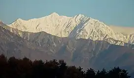 Mount Kashimayari (鹿島槍ヶ岳, Kashimayari-ga-dake) is a peak in the Hida Mountains range of the Japanese Alps at 2889m, located in Kurobe and Tateyama, Toyama and Ōmachi, Nagano, central Honshu, Japan.[3] It is part of Chūbu-Sangaku National Park[4] and is the second highest peak of the Ushirotateyama mountain range.[5][6]