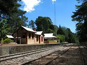 The station opened in 1883 and was the highest railway station between Adelaide and Melbourne, at an elevation of 492 m.[1] Two platforms were provided. The eastbound platform was 125 metres long and the westbound platform, 104 metres long. Both platforms are still in place, although no longer in use. The station signs on both platforms, which were mainly used at stations in the hills and near the beach (e.g. Belair and Semaphore respectively) from early in the 1900s to the 1980s, are also still in place.