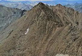 Mount Wallace is a 13,377-foot-elevation (4,077 meter) mountain summit located on the crest of the Sierra Nevada mountain range in northern California, United States.[3] It is situated on the shared boundary of Kings Canyon National Park with John Muir Wilderness, and along the common border of Fresno County with Inyo County. It is 21 miles (34 km) west of the community of Big Pine, 1.38 miles (2.22 km) northwest of Mount Powell, 0.5 miles (0.80 km) southwest of Picture Peak, and 0.37 miles (0.60 km) southeast of Mount Haeckel, which is the nearest higher neighbor.[1] Mount Wallace ranks as the 79th-highest summit in California,[2] and the ninth-highest in the Evolution Region.[1]