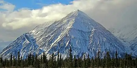 Mount Worthington is a 2,168-metre (7,113-foot) mountain summit in the Auriol Range of the Saint Elias Mountains, in Kluane National Park of Yukon, Canada.[1] The mountain is situated above the shores of Kathleen Lake, 7.2 km (4 mi) northwest of Kings Throne Peak across the lake, and 19 km (12 mi) south-southeast of Haines Junction, Yukon. The mountain can be seen from the Haines Highway as it prominently rises 1,570-metre (5,150-foot) above the lake. The mountain's name was officially adopted August 12, 1980, by the Geographical Names Board of Canada.[1] Based on the Köppen climate classification, Mount Worthington is located in a subarctic climate with long, cold, snowy winters, and mild summers.[2]