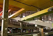 The interior walls of the car park are decorated with a series of murals by the French street artist Victor Ash, depicting scenes of wildlife such as moose and wolves standing atop 'automobile mountains' of wrecked cars.[4]