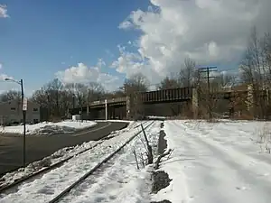 Construction of the railroad through the Mountain View section of Wayne began in 1869 when the Morris and Essex Railroad began building a freight line.[3] Mountain View station opened on May 12, 1877 after construction began in the summer of 1873 with the North Bergen Tunnel through Bergen Hill. The new tunnel would get service on the Lackawanna to Hoboken for its new terminal.[1] The station was rebuilt in 1909 by the railroad.[2] The Parish Drive overpass was built north of the station in 1939[3] as part of work for the Works Progress Administration.