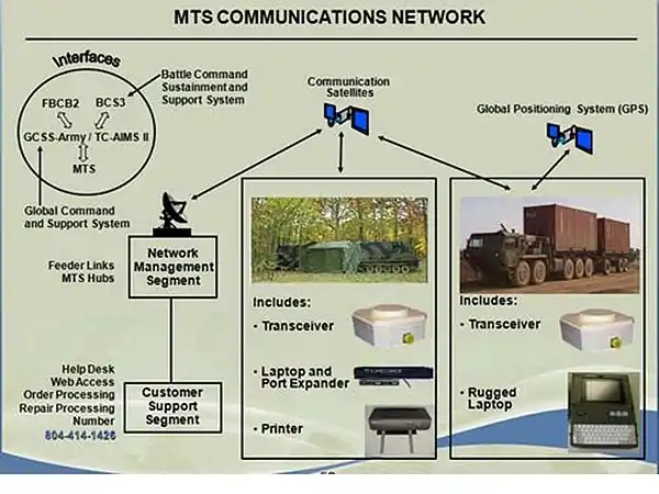 MTS computer systems come in two configurations, a mobile system that mounts in tactical vehicles and a laptop control station for use at a command post or at a higher headquarters. With this system implemented, it enables soldiers to communicate with other MTS-enabled vehicles and control stations as well as seeing their position. It is ideal for accurately identifying current vehicle locations and sending messages to and from the unit. With these two systems, the commander has accountability of the missions and orders directed and the subordinate units have a higher level of force protection due to the ability of the system. Leaders can pass critical information such as mission changes, alternate routes and other information essential to the mission to subordinate units in the field.