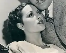 In 1939, Movita married the Irish boxer, singer and actor Jack Doyle in Mexico.[2] The marriage did not endure. After appearing in a few more minor westerns and a few television parts, she met the actor Marlon Brando in the late 1950s, after his breakup with Anna Kashfi. They married in 1960, and they had two children. Brando played the role of Fletcher Christian in the 1962 remake of the 1935 film in which Movita had played a Tahitian girl, Tehanni. Brando then married his co-star Tarita Teriipaia in 1962. Castaneda's marriage to Brando was annulled in 1968 after it was discovered her previous marriage to Doyle was still active.[3] After a small role on television in 1977, Movita appeared as Ana in 17 episodes of Knots Landing from October 1987 to May 1989.