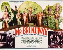 Mr. Broadway is a 1933 American pre-Code comedy film written by Abel Green and Ed Sullivan. The film was directed by Johnnie Walker (1894–1949) who was also a silent film actor and producer, and stars Sullivan along with a cast of celebrity walk-ons. It was shot in New York City.