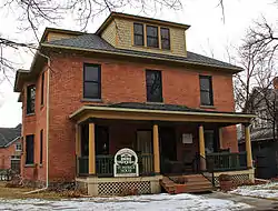 It is a two-and-one-half story American Foursquare house.[2]