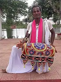 ![]() Guru Kishore Pradhan playing the Mrudanga | |
