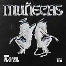 "Muñecas" (English: "Dolls") is a song by Argentine singer Tini, Argentine rapper La Joaqui, and American music producer Steve Aoki. The song was released on 12 January 2023, through Hollywood Records and 5020 Records as the ninth single from Tini's fourth studio album, Cupido (2023).[1] It is also included on Aoki's eighth studio album Hiroquest 2: Double Helix (2023), serving as the second single from that album.