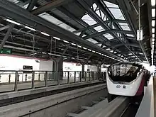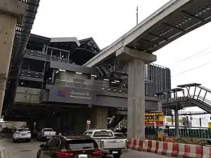 Muang Thong Thani station (Thai: สถานีเมืองทองธานี) is a Bangkok MRT station on the Pink Line. The station is located on Chaeng Watthana Road in Pak Kret district, Nonthaburi province.[1] The station has four exits and in future will act an interchange for the Pink Line main line and the under-construction Impact spur line which serves Muang Thong Thani and IMPACT.[2] The station opened on 21 November 2023 as part of trial operations on the entire Pink Line main line.[3]