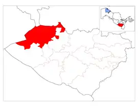 Muborak District is a district of Qashqadaryo Region in Uzbekistan. The capital lies at the city Muborak.[1] It has an area of 3,070 km2 (1,190 sq mi)[2] and its population is 88,200 (2021 est.).[3] The district consists of one city (Muborak), 5 urban-type settlements (Qarliq, Baxt, Qoraqum, Diyonat, Shayx) and 4 rural communities.[1]