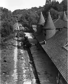 The creek enters into the Don River valley at the Don Valley Brick Works, where its flow bifurcates through or adjacent to the ponds, and then re-converges shortly before exiting into the Don River south of Bayview Avenue.[11] The ponds serve to hold and provide biological filtration for the inflow from Mud Creek prior to discharge into the Don River, and is part of Toronto's storm-water management strategy.[15] Due to the geology and depth of the ravine, erosion and foresting work has been ongoing to preserve its integrity as well as the Beltline Trail that runs through it.[16]