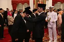 As a form of his loyalty has become a civil servant, in 2012, Muhammad was awarded the Satyalancana Karya Satya 10 years service award by the Indonesian President, Susilo Bambang Yudhoyono.[11][7] Then in 2015, Joko Widodo, as the President of Indonesia, officially awarded the honor of the 1st Class of Star of the Defenders of Democracy (Bintang Penegak Demokrasi Utama) to Muhammad, who at the time served as Chairman of the Election Supervisory Board of the Republic of Indonesia, the same award was given to Husni Kamil Manik as Chairman of the General Elections Commission of the Republic of Indonesia. The honorific is given based on the Republic of Indonesia's Presidential Decree Number 85/TK/YEAR 2015 dated August 7, 2015 concerning the awarding of honors. The awarding was given in the framework of the 70th anniversary of the independence of the Republic of Indonesia on August 13, 2015.[12]